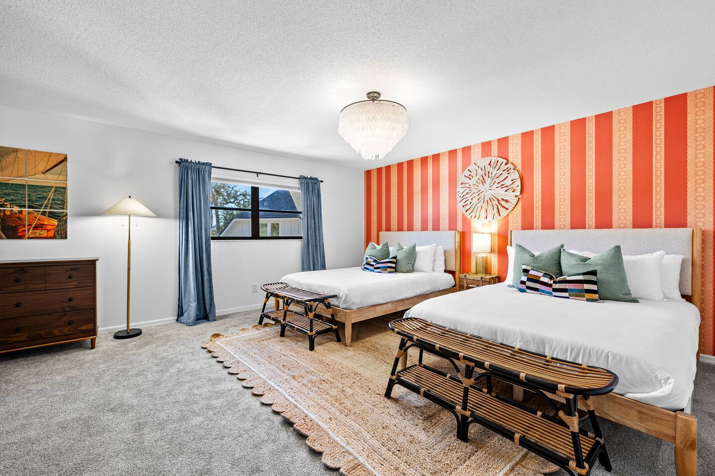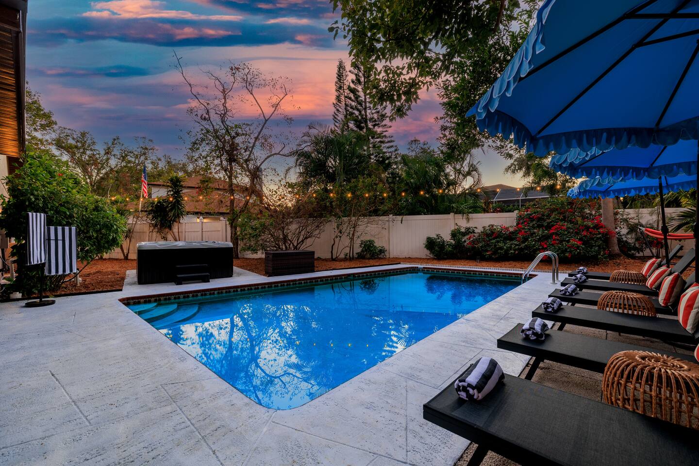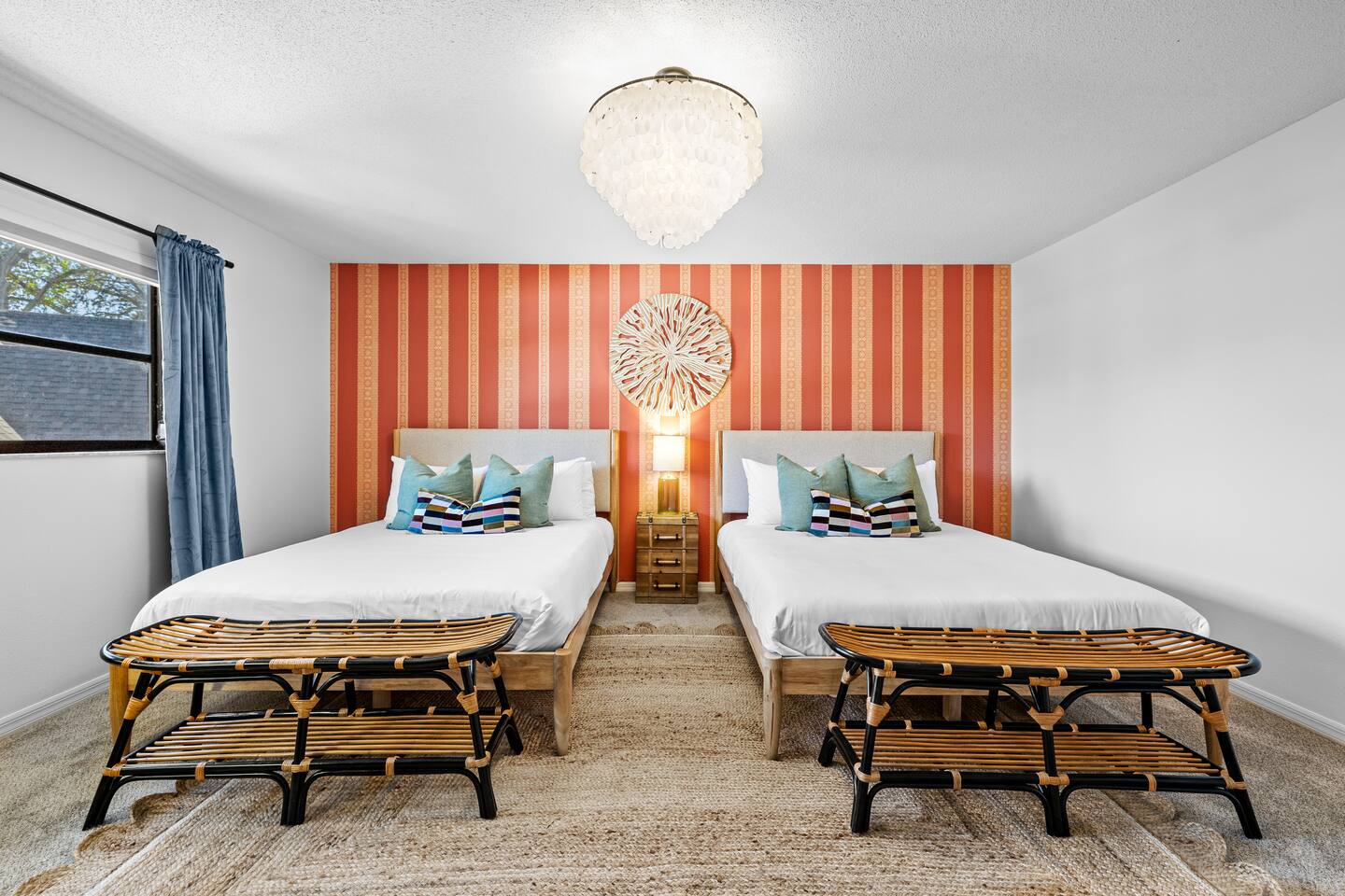 🛋 The Space Over 3,300 square feet of spacious, chill vibes 5 bedrooms, 3 full bathrooms, and 11 total beds. Sleeps 22 comfortably — ideal for groups or families. The hidden SPEAKEASY GAME ROOM is a guest favorite — discover it behind a secret bookshelf door! 🤫🎱 — 📍 Prime Location Highlights: Redington Shores Beach – 6 minutes Indian Rocks Beach – 13 minutes Treasure Island – 14 minutes St Pete Beach – 17 minutes Clearwater Beach – 20 minutes Downtown St Pete – 25 minutes Tampa Airport – 30 minutes Disney World – 1.5 hours — 🌳 Nature, Trails & Playgrounds: Walk to Boca Ciega Millennium Park (6 mins!) Shady wooded trails Peaceful ponds full of turtles and birds Giant wooden watchtower with tree-top views Gorgeous boardwalk trail through the forest canopy Seminole City Park – just 0.5 miles away Huge playground for kids Picnic tables and green space Live music & events on select nights Pinellas Trail – also 0.5 miles away 45 miles of scenic biking, walking, and running trails Great for stroller walks and fitness lovers — 🎮 Entertainment & Amenities: 65” Smart TV + Soundbar in the main living room Super-fast WiFi + 2 dedicated workspaces Tons of games and family fun 🎱 Game Room (Bedroom 5) Includes: Pool table & ping pong Foosball 2 old-school arcade machines Smart TV + Bluetooth Soundbar Kids’ books, toys & board games. ⛳️ Outdoor Fun Includes: Heated Pool (approx. 21’ x 14’) Hot Tub with LED lights + Bluetooth Mini golf Fire pit with Adirondack chairs Tiki bar Magical bistro lights at night Games like cornhole, Connect Four, and giant Jenga — 🏖 Beach Gear Included; Beach chairs Umbrellas Cooler Kids’ beach toys Collapsible cart Beach towels — 🛏 Bedroom Set-Up; Bedroom 1 – “Beachcomber’s Cove” (King bed) Main floor, ensuite bath, Smart TV, walk-in closet, vanity, desk Bedroom 2 – “Neutral Palms” (King bed) Main floor, closet, lighted makeup vanity Bedroom 3 – “Driftwood Suite” (2 Queen beds) 2nd floor, Smart TV, large closet Bedroom 4 – “The Nautical Nook” (2 Queen beds) 2nd floor, Smart TV, closet, private balcony with table/chairs Bedroom 5 – Hidden “Speakeasy” Game Room (2 Queen-over-Queen bunks = 4 beds) Behind secret bookshelf door! Arcade, games, Smart TV, kids' toys Upstairs Reading Nook – Pull-out double sleeper sofa – cozy spot for extra guests — 🚿 Bathrooms; 3 full bathrooms Dual sinks, shower/tub combos, and vanities Makeup areas in Bedroom 1, Bedroom 2, and upstairs bathroom — 🍽 Kitchen & Dining; Fully stocked kitchen for meal prep Keurig / drip / cold brew / French press Wine & beer glasses + pool-safe cups Ninja blender, crockpot, Dutch oven, more Seating for 22 inside + additional outdoor dining options High chair, pack n play, and door chimes for little ones — 🐶 Pet Policy; We’re dog lovers ourselves! Up to 2 well-behaved pups welcome ($125 fee per stay) Fenced backyard Please let us know ahead of time so we can prepare for your furry family! — 🚗 Parking & Access; Smart lock entry with unique code Off-street parking for 4 vehicles (1 in garage, 3 in driveway) 1 Ring camera at the front door for security — ⏰ Additional Info; Check-in: 4:00 PM Check-out: 10:00 AM Must be 21+ to book No parties — but you can absolutely enjoy music and fun with your group Quiet hours 10pm–9am (please respect our awesome neighbors!) To help ensure a peaceful experience for everyone, we have discreet noise monitors on the property. They don’t record any conversations—just monitor decibel levels to help us stay in line with local quiet hours — 🎉 Ready to book your tropical escape? Send us a message with any questions. We can’t wait to host you at the ✨ Coastal Cabana ✨