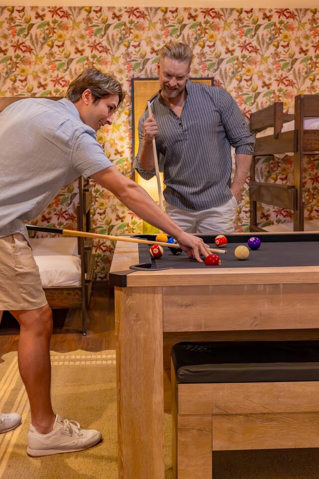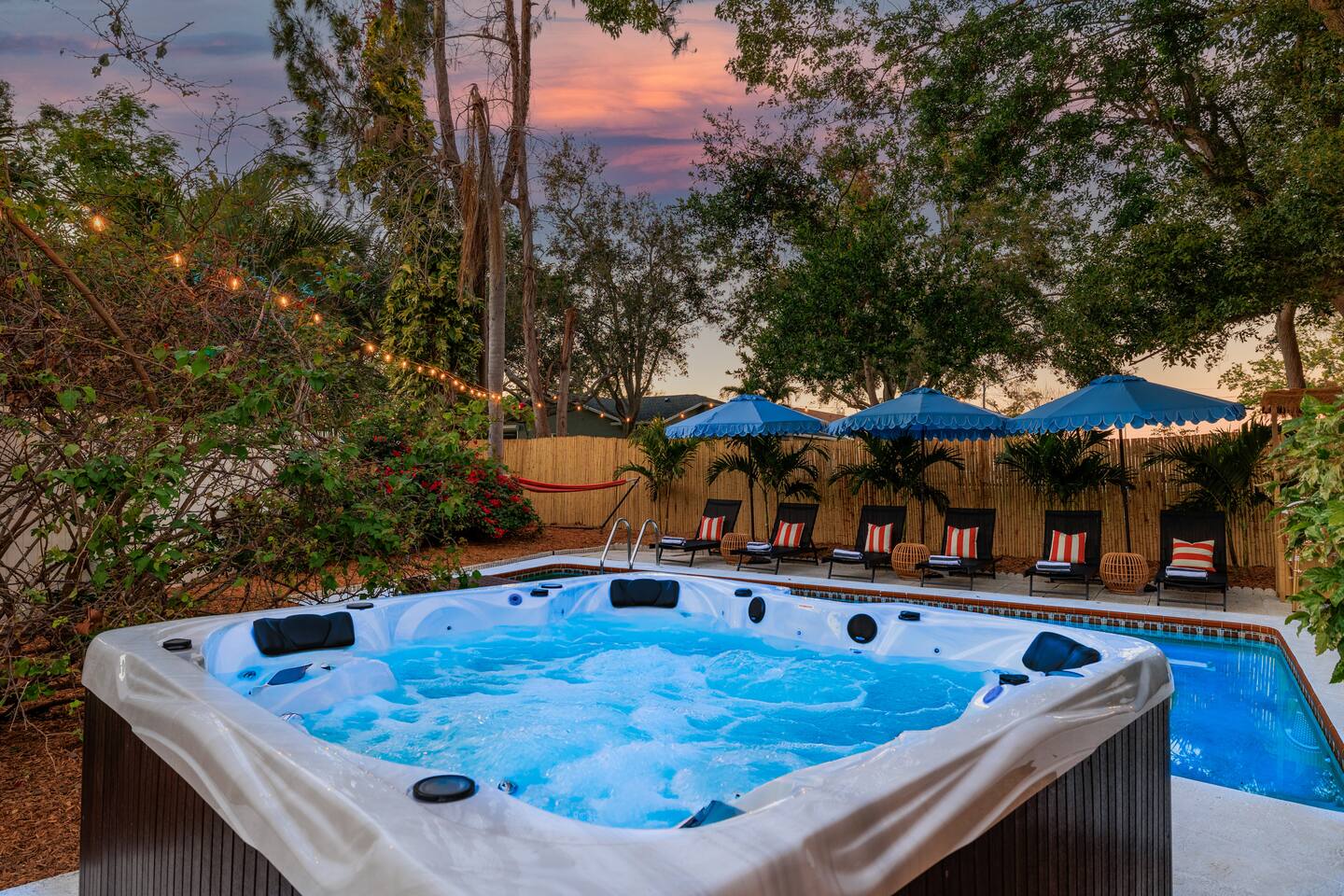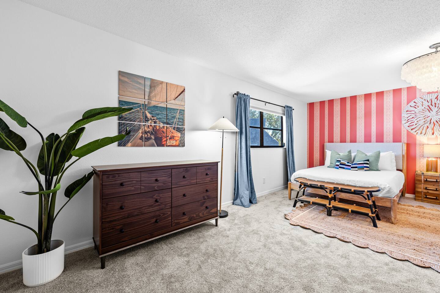 🛋 The Space Over 3,300 square feet of spacious, chill vibes 5 bedrooms, 3 full bathrooms, and 11 total beds. Sleeps 22 comfortably — ideal for groups or families. The hidden SPEAKEASY GAME ROOM is a guest favorite — discover it behind a secret bookshelf door! 🤫🎱 — 📍 Prime Location Highlights: Redington Shores Beach – 6 minutes Indian Rocks Beach – 13 minutes Treasure Island – 14 minutes St Pete Beach – 17 minutes Clearwater Beach – 20 minutes Downtown St Pete – 25 minutes Tampa Airport – 30 minutes Disney World – 1.5 hours — 🌳 Nature, Trails & Playgrounds: Walk to Boca Ciega Millennium Park (6 mins!) Shady wooded trails Peaceful ponds full of turtles and birds Giant wooden watchtower with tree-top views Gorgeous boardwalk trail through the forest canopy Seminole City Park – just 0.5 miles away Huge playground for kids Picnic tables and green space Live music & events on select nights Pinellas Trail – also 0.5 miles away 45 miles of scenic biking, walking, and running trails Great for stroller walks and fitness lovers — 🎮 Entertainment & Amenities: 65” Smart TV + Soundbar in the main living room Super-fast WiFi + 2 dedicated workspaces Tons of games and family fun 🎱 Game Room (Bedroom 5) Includes: Pool table & ping pong Foosball 2 old-school arcade machines Smart TV + Bluetooth Soundbar Kids’ books, toys & board games. ⛳️ Outdoor Fun Includes: Heated Pool (approx. 21’ x 14’) Hot Tub with LED lights + Bluetooth Mini golf Fire pit with Adirondack chairs Tiki bar Magical bistro lights at night Games like cornhole, Connect Four, and giant Jenga — 🏖 Beach Gear Included; Beach chairs Umbrellas Cooler Kids’ beach toys Collapsible cart Beach towels — 🛏 Bedroom Set-Up; Bedroom 1 – “Beachcomber’s Cove” (King bed) Main floor, ensuite bath, Smart TV, walk-in closet, vanity, desk Bedroom 2 – “Neutral Palms” (King bed) Main floor, closet, lighted makeup vanity Bedroom 3 – “Driftwood Suite” (2 Queen beds) 2nd floor, Smart TV, large closet Bedroom 4 – “The Nautical Nook” (2 Queen beds) 2nd floor, Smart TV, closet, private balcony with table/chairs Bedroom 5 – Hidden “Speakeasy” Game Room (2 Queen-over-Queen bunks = 4 beds) Behind secret bookshelf door! Arcade, games, Smart TV, kids' toys Upstairs Reading Nook – Pull-out double sleeper sofa – cozy spot for extra guests — 🚿 Bathrooms; 3 full bathrooms Dual sinks, shower/tub combos, and vanities Makeup areas in Bedroom 1, Bedroom 2, and upstairs bathroom — 🍽 Kitchen & Dining; Fully stocked kitchen for meal prep Keurig / drip / cold brew / French press Wine & beer glasses + pool-safe cups Ninja blender, crockpot, Dutch oven, more Seating for 22 inside + additional outdoor dining options High chair, pack n play, and door chimes for little ones — 🐶 Pet Policy; We’re dog lovers ourselves! Up to 2 well-behaved pups welcome ($125 fee per stay) Fenced backyard Please let us know ahead of time so we can prepare for your furry family! — 🚗 Parking & Access; Smart lock entry with unique code Off-street parking for 4 vehicles (1 in garage, 3 in driveway) 1 Ring camera at the front door for security — ⏰ Additional Info; Check-in: 4:00 PM Check-out: 10:00 AM Must be 21+ to book No parties — but you can absolutely enjoy music and fun with your group Quiet hours 10pm–9am (please respect our awesome neighbors!) To help ensure a peaceful experience for everyone, we have discreet noise monitors on the property. They don’t record any conversations—just monitor decibel levels to help us stay in line with local quiet hours — 🎉 Ready to book your tropical escape? Send us a message with any questions. We can’t wait to host you at the ✨ Coastal Cabana ✨