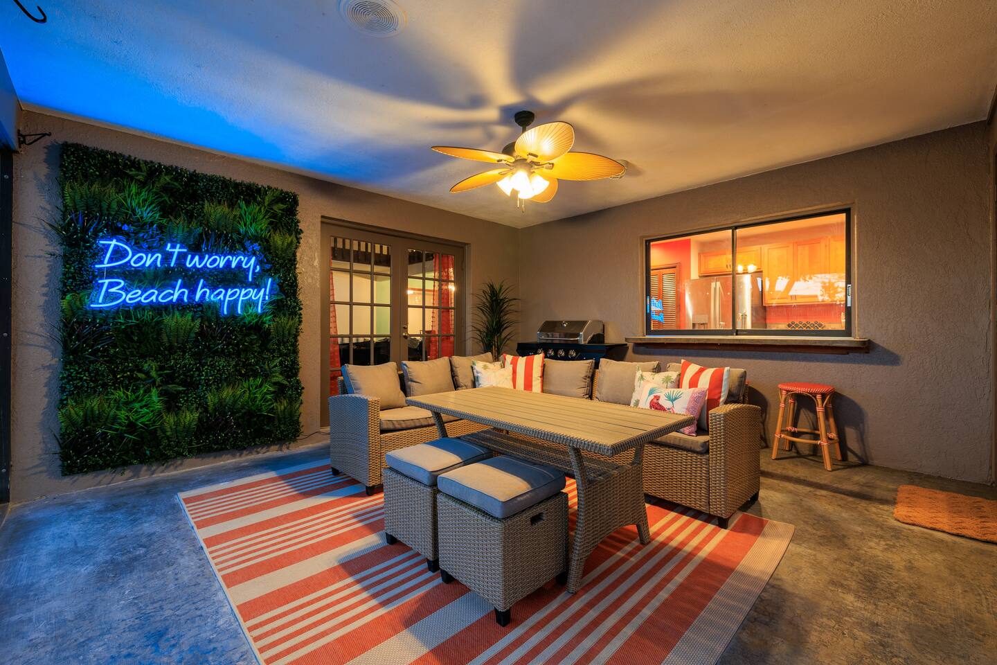 🌴 Welcome to the Coastal Cabana 🌴 Relax with the whole family at this peaceful and playful tropical getaway! ✨ Sleeps up to 22 guests 🕵️ Secret Speakeasy Game Room 🛏 5 Bedrooms | 🚿 3 Bathrooms 🌡 HEATED POOL | 🛁 Hot Tub ⛳ Mini Golf | 🎮 Arcade Games | 🔥 Fire Pit Our home is a lush tropical resort-style escape, packed with amenities — just 6 minutes from some of the BEST beaches in the U.S. 🏖️ And yes... we’re dog people! 🐶🐾 Pet friendly too.
