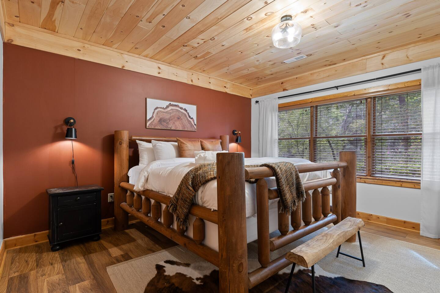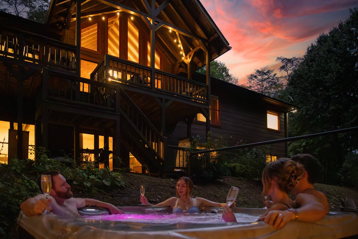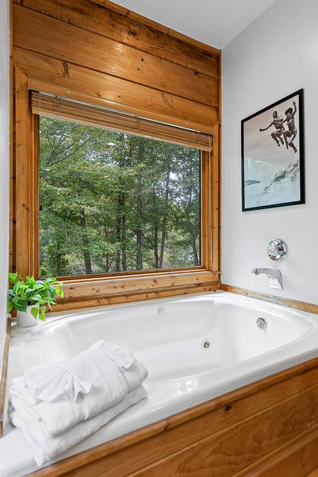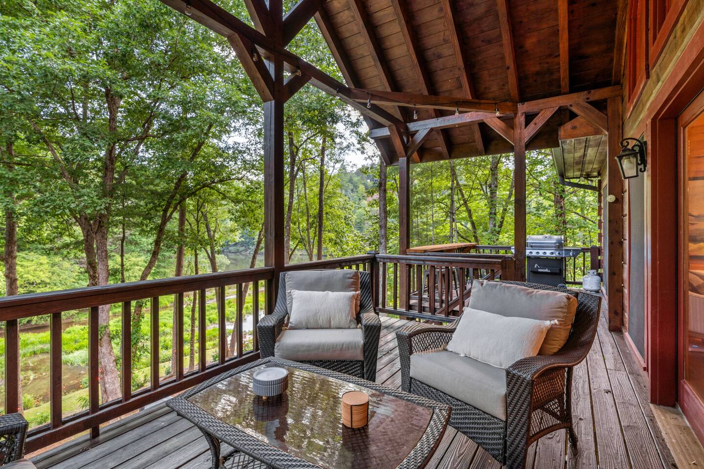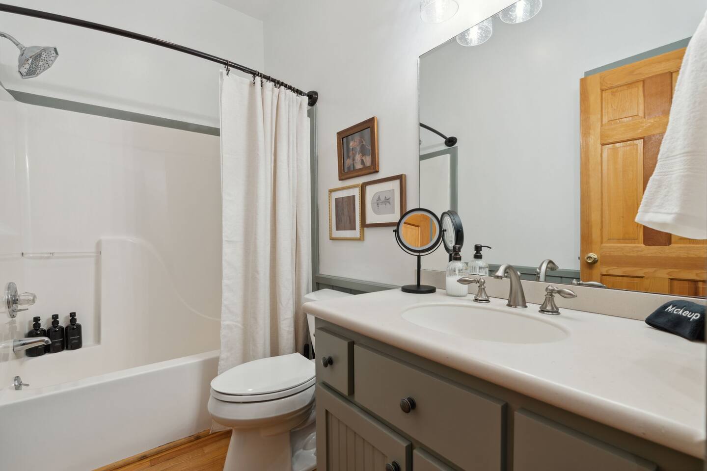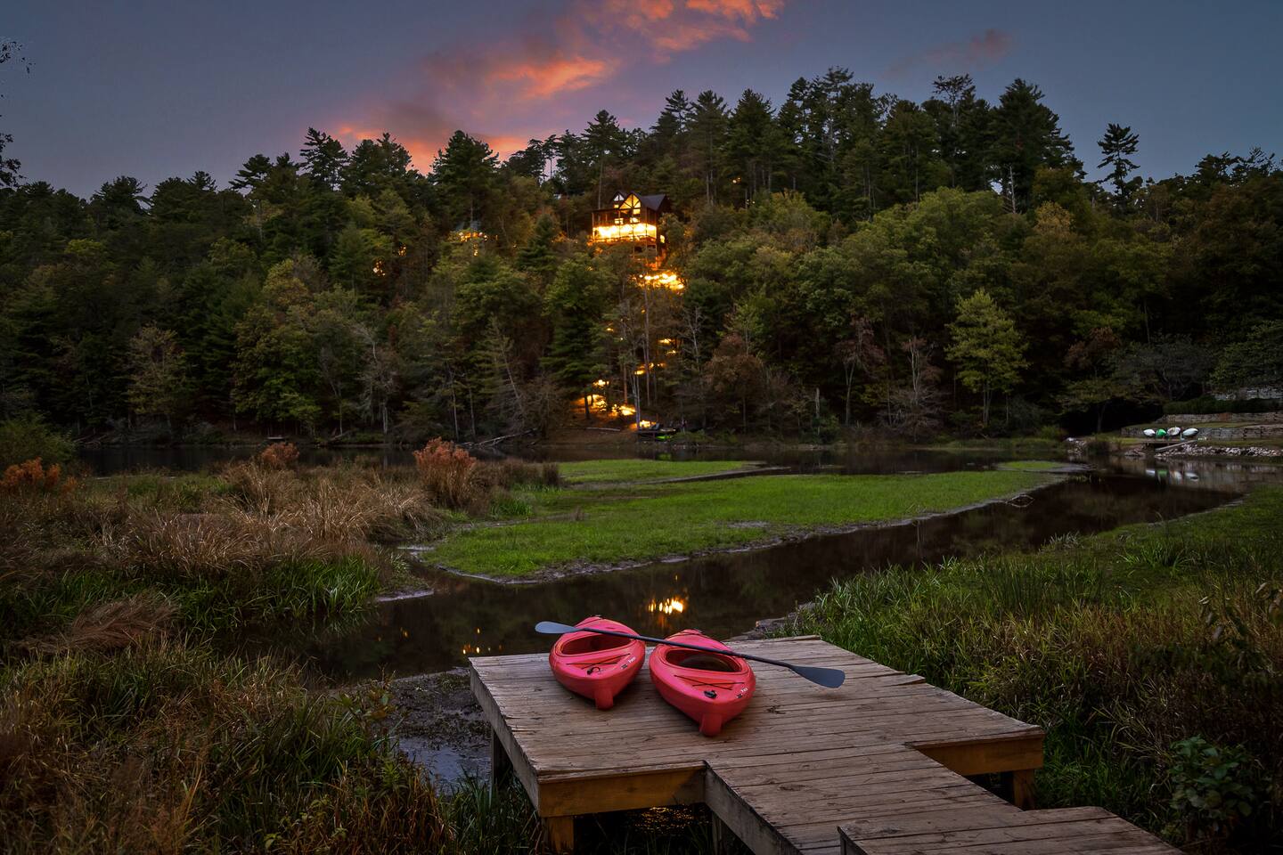 🌲 Welcome to THE HIDDEN STILL — Blue Ridge Speakeasy Lakehouse. Waterfront on serene Allen Lake with mountain views and just 13 minutes to Downtown Blue Ridge. Renovated, and designed for groups to spread out, reconnect, and make memories. 🍂 WEDDINGS & EVENTS WELCOME - Please inquire first. 🛋 The Space: 🛏 7 bedrooms • 4.5 baths • sleeps 22 (including queen pullout on the lower level) 🏡 Main level (upstairs): Four bedrooms — 3 King suites (each with walk‑in closet) and 1 Queen rooms (with walk‑in closet). Open great room with Smart TV, and lake views, dining for a crowd, and a fully stocked chef’s kitchen. 🧭 Lower level: Three Bedrooms (two Twins, 1 King, plus a Bunk room with 4x Queen Bunks). A second living room with Smart TV and the queen pullout, plus walk‑out patio access. 🕵️♂️ Hidden speakeasy: Concealed behind a bookshelf door — moody lounge lighting, conversation seating, bar‑ready vibe (BYO). Signature photo moment. 🎬 Home theater: Big‑screen movie area for film nights and the big game. 🌅 Outdoors 🎣 Private dock on Allen Lake — quiet mornings & golden‑hour sunsets 🪵 Two decks + patio, 🔥 wood‑burning fire pit with Adirondack seating, ✨ bistro lights in the trees 🛁 7‑person hot tub with LED lights 🌊 On‑the‑Water & 🥾 Nearby 🛶 2 paddleboards + kayaks 🛟 life jackets included 🎣 Fishing off the dock; peaceful, non‑motorized lake setting 🚗 Minutes to Blue Ridge eats & breweries, Mercier Orchards, the Aska Trail system, waterfalls, and white‑water rafting on the Ocoee/Toccoa 🎮 Entertainment & Amenities 📺 55" Smart TVs in great room, primary bedroom, and lower living room 🎵 Record player + starter records (bring favorites!) 🎯 Games: shuffleboard, darts, mini hoops, cornhole, chess, and classic board games 📶 Fast Wi‑Fi and cozy nooks to read or work 🍽️ Kitchen & Dining 🍳 Fully equipped kitchen with quality cookware, bakeware, knives, and prep tools ☕ Nespresso + drip coffee maker; blender & essentials for group meals 🍽️ Indoor dining table + alfresco dining on the deck 👶 Family‑Friendly 🧒 High chair and Pack ’n Play provided 🔔 Door chimes on every exterior door for added peace of mind 🐶 Pet Policy 🐾 Up to 2 dogs welcome; $125 per stay 🧺 Please ensure pups are crate‑trained and tidy up after them 🔑 Guest Access 🔓 Entire home is yours (except a locked owner’s closet ) 🔢 Smart keypad entry with unique code 🚗 Parking & Getting Here 🅿️ Ample driveway parking; SUV is required for neighborhood approach (gravel driveway) 📌 Things to Know ⏰ Check‑in 4:00 PM • Check‑out 10:00 AM 🧾 Primary guest 21+ and staying each night 🎉 No parties and 🚭 no smoking/vaping of any kind There is a $500 fine for smoking inside 👥 Only registered guests overnight 📷 Exterior security cameras: driveway, cameras do not face any private interior spaces Whether you’re chasing a peaceful lakeside escape or a Blue Ridge adventure, The Hidden Still serves room to relax, spaces to play, and a one‑of‑a‑kind speakeasy your group will never forget. ✨