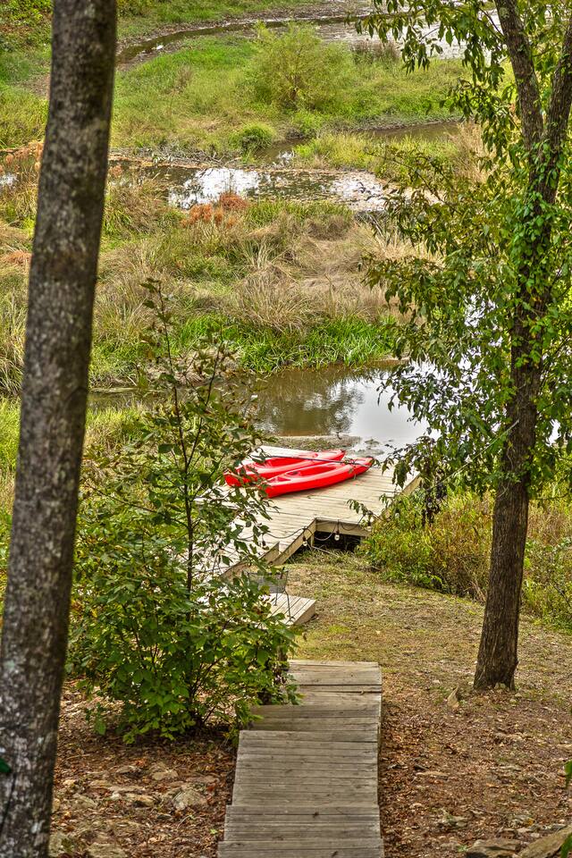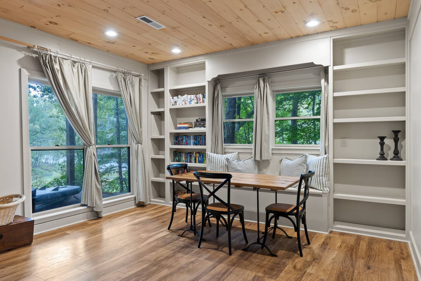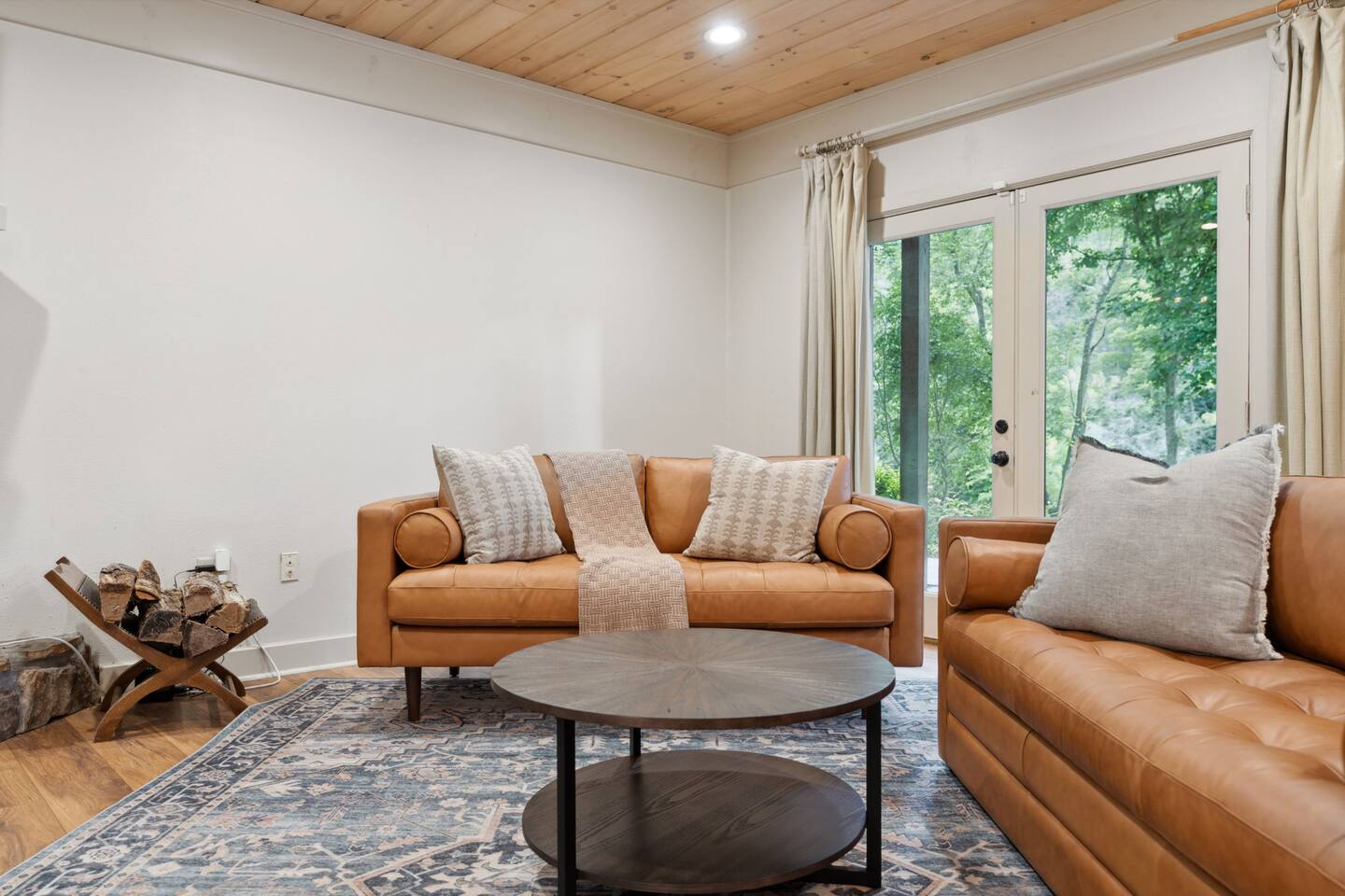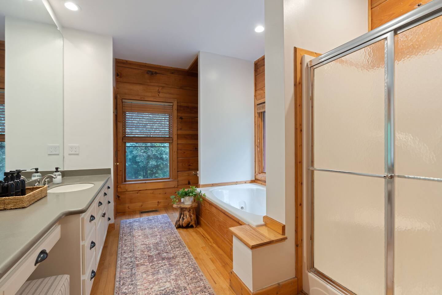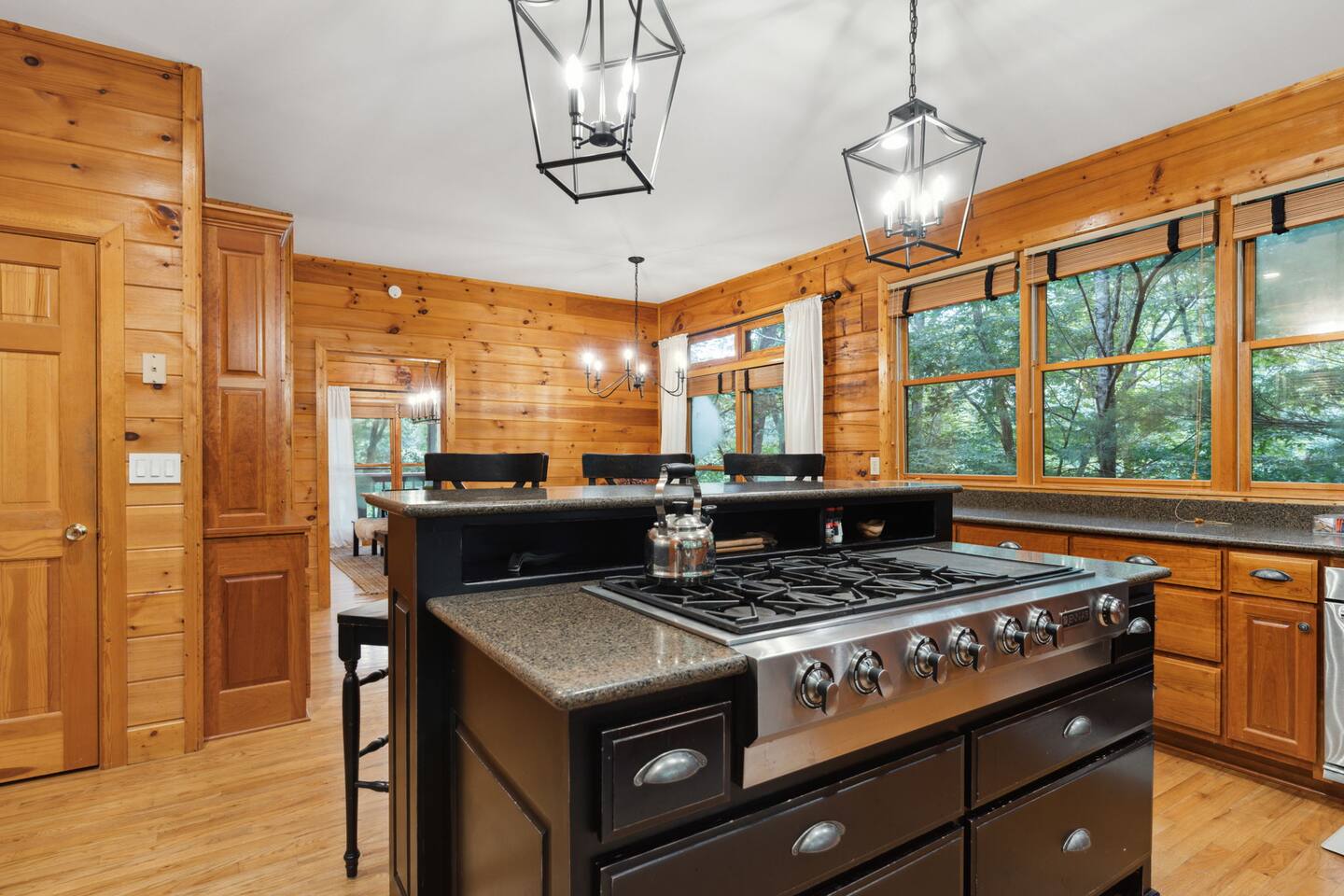 🌲 Welcome to THE HIDDEN STILL — Blue Ridge Speakeasy Lakehouse. Waterfront on serene Allen Lake with mountain views and just 13 minutes to Downtown Blue Ridge. Renovated, and designed for groups to spread out, reconnect, and make memories. 🍂 WEDDINGS & EVENTS WELCOME - Please inquire first. 🛋 The Space: 🛏 7 bedrooms • 4.5 baths • sleeps 22 (including queen pullout on the lower level) 🏡 Main level (upstairs): Four bedrooms — 3 King suites (each with walk‑in closet) and 1 Queen rooms (with walk‑in closet). Open great room with Smart TV, and lake views, dining for a crowd, and a fully stocked chef’s kitchen. 🧭 Lower level: Three Bedrooms (two Twins, 1 King, plus a Bunk room with 4x Queen Bunks). A second living room with Smart TV and the queen pullout, plus walk‑out patio access. 🕵️♂️ Hidden speakeasy: Concealed behind a bookshelf door — moody lounge lighting, conversation seating, bar‑ready vibe (BYO). Signature photo moment. 🎬 Home theater: Big‑screen movie area for film nights and the big game. 🌅 Outdoors 🎣 Private dock on Allen Lake — quiet mornings & golden‑hour sunsets 🪵 Two decks + patio, 🔥 wood‑burning fire pit with Adirondack seating, ✨ bistro lights in the trees 🛁 7‑person hot tub with LED lights 🌊 On‑the‑Water & 🥾 Nearby 🛶 2 paddleboards + kayaks 🛟 life jackets included 🎣 Fishing off the dock; peaceful, non‑motorized lake setting 🚗 Minutes to Blue Ridge eats & breweries, Mercier Orchards, the Aska Trail system, waterfalls, and white‑water rafting on the Ocoee/Toccoa 🎮 Entertainment & Amenities 📺 55" Smart TVs in great room, primary bedroom, and lower living room 🎵 Record player + starter records (bring favorites!) 🎯 Games: shuffleboard, darts, mini hoops, cornhole, chess, and classic board games 📶 Fast Wi‑Fi and cozy nooks to read or work 🍽️ Kitchen & Dining 🍳 Fully equipped kitchen with quality cookware, bakeware, knives, and prep tools ☕ Nespresso + drip coffee maker; blender & essentials for group meals 🍽️ Indoor dining table + alfresco dining on the deck 👶 Family‑Friendly 🧒 High chair and Pack ’n Play provided 🔔 Door chimes on every exterior door for added peace of mind 🐶 Pet Policy 🐾 Up to 2 dogs welcome; $125 per stay 🧺 Please ensure pups are crate‑trained and tidy up after them 🔑 Guest Access 🔓 Entire home is yours (except a locked owner’s closet ) 🔢 Smart keypad entry with unique code 🚗 Parking & Getting Here 🅿️ Ample driveway parking; SUV is required for neighborhood approach (gravel driveway) 📌 Things to Know ⏰ Check‑in 4:00 PM • Check‑out 10:00 AM 🧾 Primary guest 21+ and staying each night 🎉 No parties and 🚭 no smoking/vaping of any kind There is a $500 fine for smoking inside 👥 Only registered guests overnight 📷 Exterior security cameras: driveway, cameras do not face any private interior spaces Whether you’re chasing a peaceful lakeside escape or a Blue Ridge adventure, The Hidden Still serves room to relax, spaces to play, and a one‑of‑a‑kind speakeasy your group will never forget. ✨