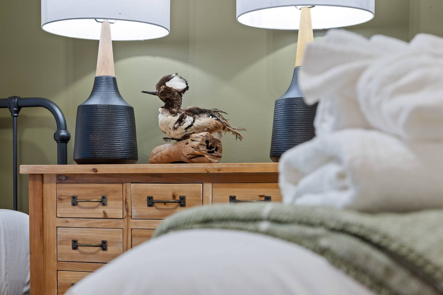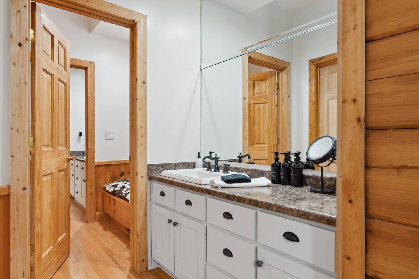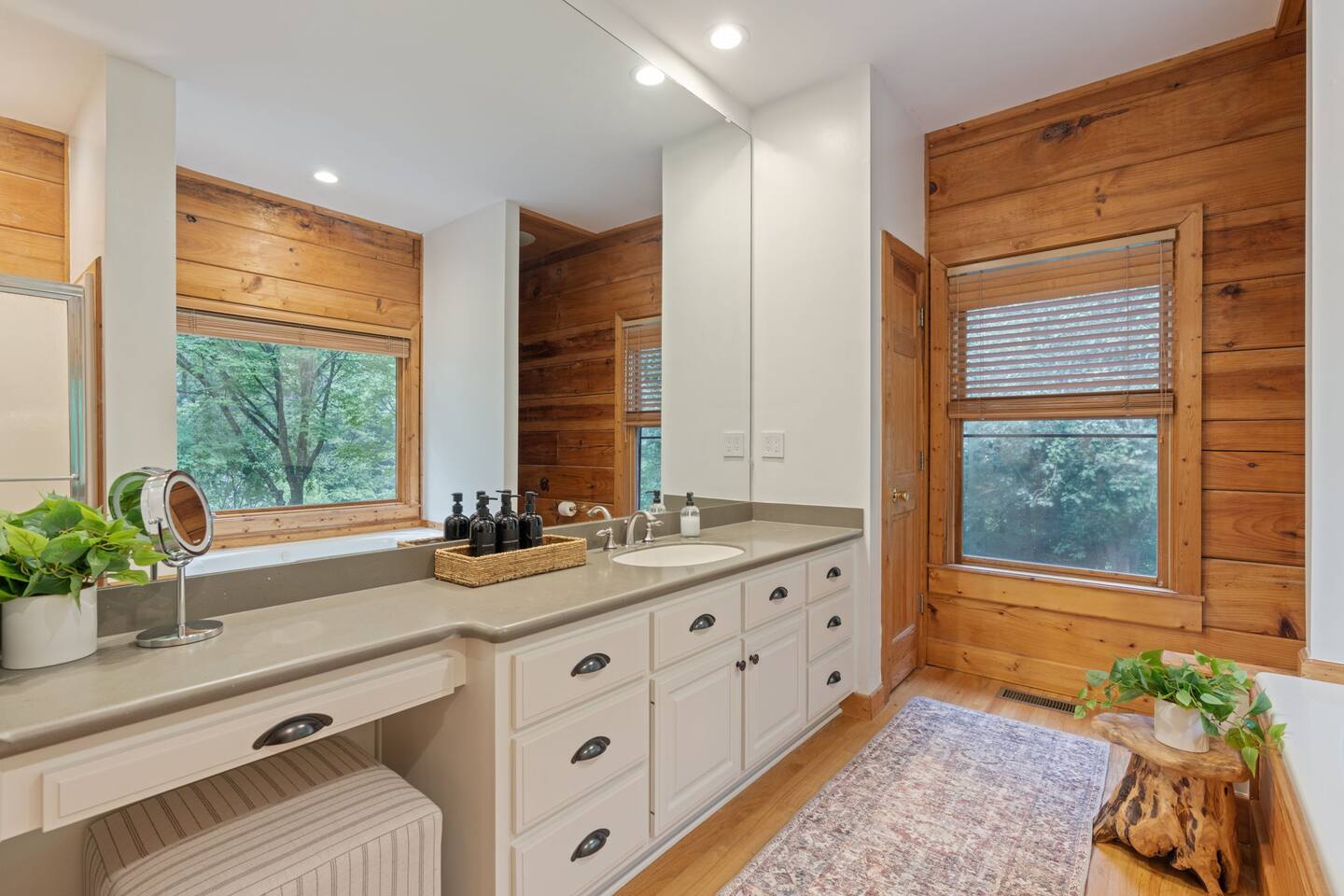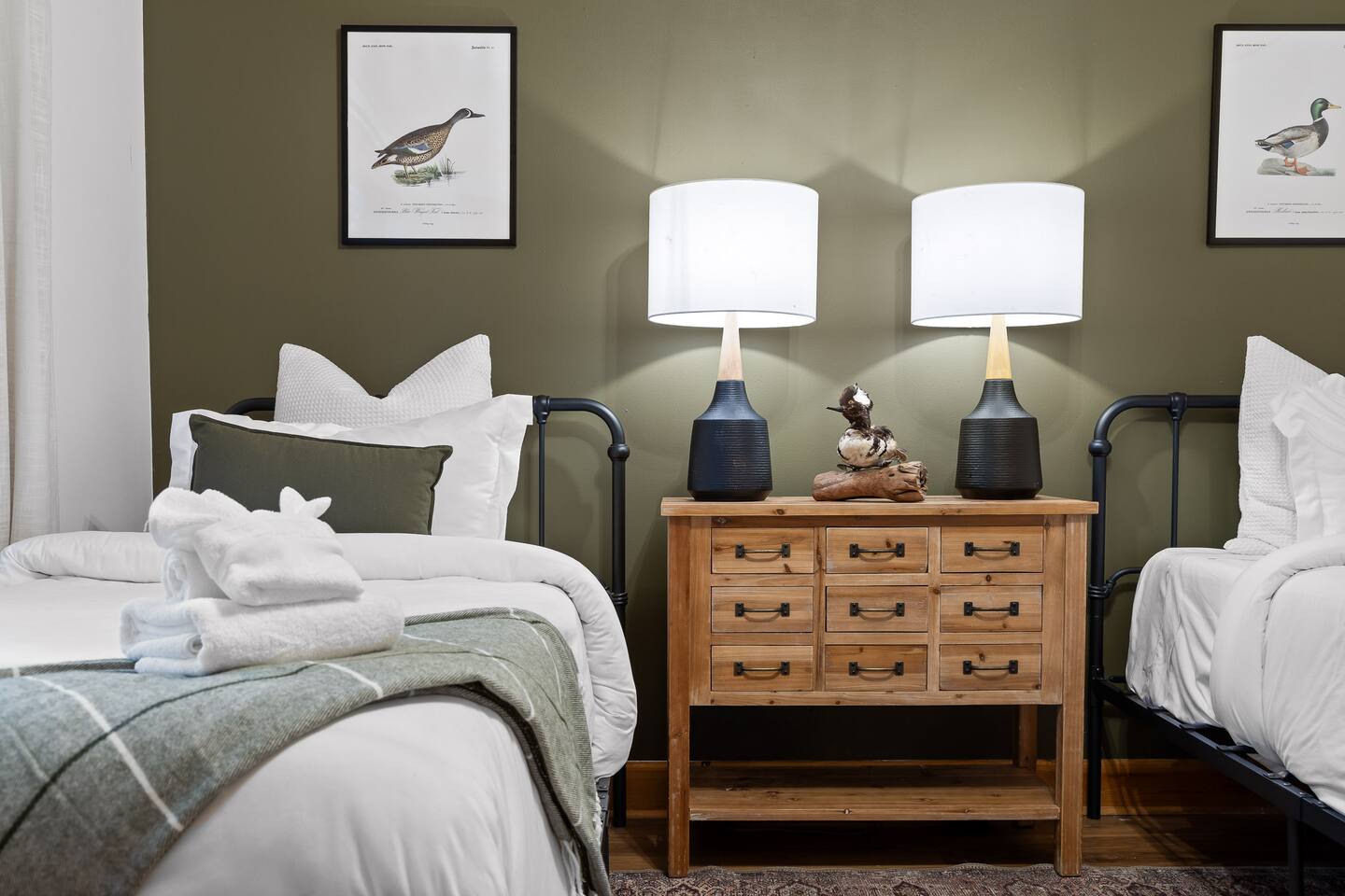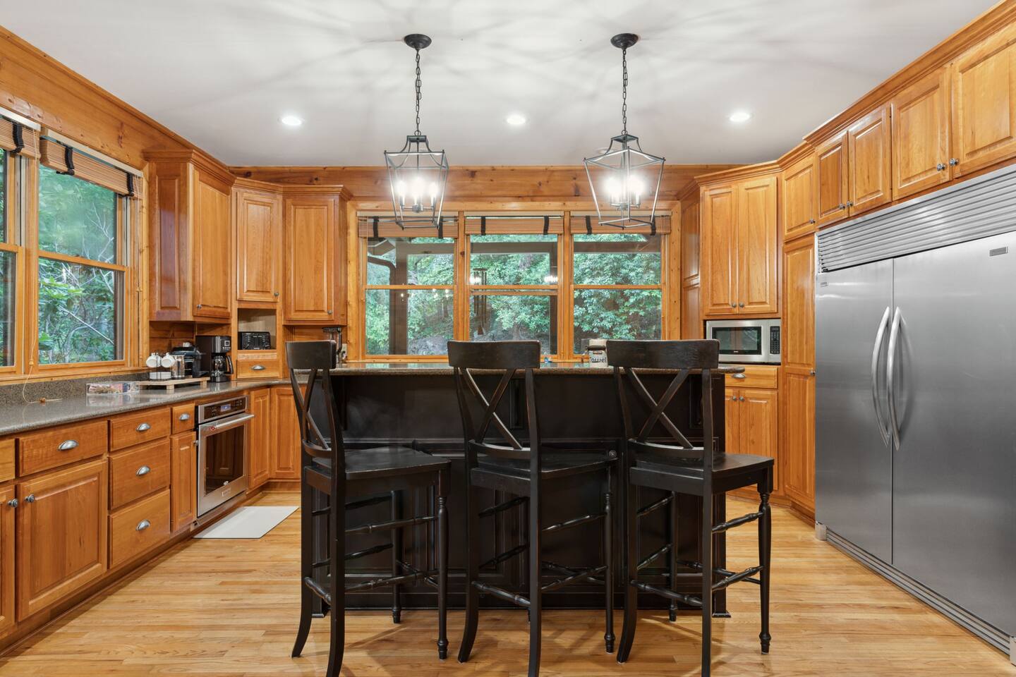 🌲 Welcome to THE HIDDEN STILL — Blue Ridge Speakeasy Lakehouse. Waterfront on serene Allen Lake with mountain views and just 13 minutes to Downtown Blue Ridge. Renovated, and designed for groups to spread out, reconnect, and make memories. 🍂 WEDDINGS & EVENTS WELCOME - Please inquire first. 🛋 The Space: 🛏 7 bedrooms • 4.5 baths • sleeps 22 (including queen pullout on the lower level) 🏡 Main level (upstairs): Four bedrooms — 3 King suites (each with walk‑in closet) and 1 Queen rooms (with walk‑in closet). Open great room with Smart TV, and lake views, dining for a crowd, and a fully stocked chef’s kitchen. 🧭 Lower level: Three Bedrooms (two Twins, 1 King, plus a Bunk room with 4x Queen Bunks). A second living room with Smart TV and the queen pullout, plus walk‑out patio access. 🕵️♂️ Hidden speakeasy: Concealed behind a bookshelf door — moody lounge lighting, conversation seating, bar‑ready vibe (BYO). Signature photo moment. 🎬 Home theater: Big‑screen movie area for film nights and the big game. 🌅 Outdoors 🎣 Private dock on Allen Lake — quiet mornings & golden‑hour sunsets 🪵 Two decks + patio, 🔥 wood‑burning fire pit with Adirondack seating, ✨ bistro lights in the trees 🛁 7‑person hot tub with LED lights 🌊 On‑the‑Water & 🥾 Nearby 🛶 2 paddleboards + kayaks 🛟 life jackets included 🎣 Fishing off the dock; peaceful, non‑motorized lake setting 🚗 Minutes to Blue Ridge eats & breweries, Mercier Orchards, the Aska Trail system, waterfalls, and white‑water rafting on the Ocoee/Toccoa 🎮 Entertainment & Amenities 📺 55" Smart TVs in great room, primary bedroom, and lower living room 🎵 Record player + starter records (bring favorites!) 🎯 Games: shuffleboard, darts, mini hoops, cornhole, chess, and classic board games 📶 Fast Wi‑Fi and cozy nooks to read or work 🍽️ Kitchen & Dining 🍳 Fully equipped kitchen with quality cookware, bakeware, knives, and prep tools ☕ Nespresso + drip coffee maker; blender & essentials for group meals 🍽️ Indoor dining table + alfresco dining on the deck 👶 Family‑Friendly 🧒 High chair and Pack ’n Play provided 🔔 Door chimes on every exterior door for added peace of mind 🐶 Pet Policy 🐾 Up to 2 dogs welcome; $125 per stay 🧺 Please ensure pups are crate‑trained and tidy up after them 🔑 Guest Access 🔓 Entire home is yours (except a locked owner’s closet ) 🔢 Smart keypad entry with unique code 🚗 Parking & Getting Here 🅿️ Ample driveway parking; SUV is required for neighborhood approach (gravel driveway) 📌 Things to Know ⏰ Check‑in 4:00 PM • Check‑out 10:00 AM 🧾 Primary guest 21+ and staying each night 🎉 No parties and 🚭 no smoking/vaping of any kind There is a $500 fine for smoking inside 👥 Only registered guests overnight 📷 Exterior security cameras: driveway, cameras do not face any private interior spaces Whether you’re chasing a peaceful lakeside escape or a Blue Ridge adventure, The Hidden Still serves room to relax, spaces to play, and a one‑of‑a‑kind speakeasy your group will never forget. ✨