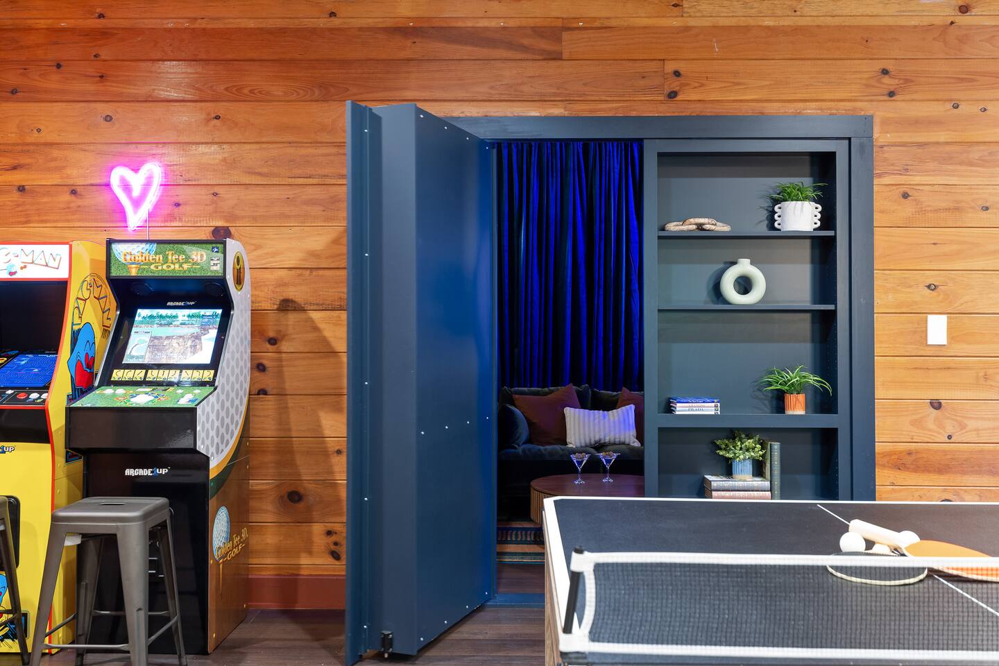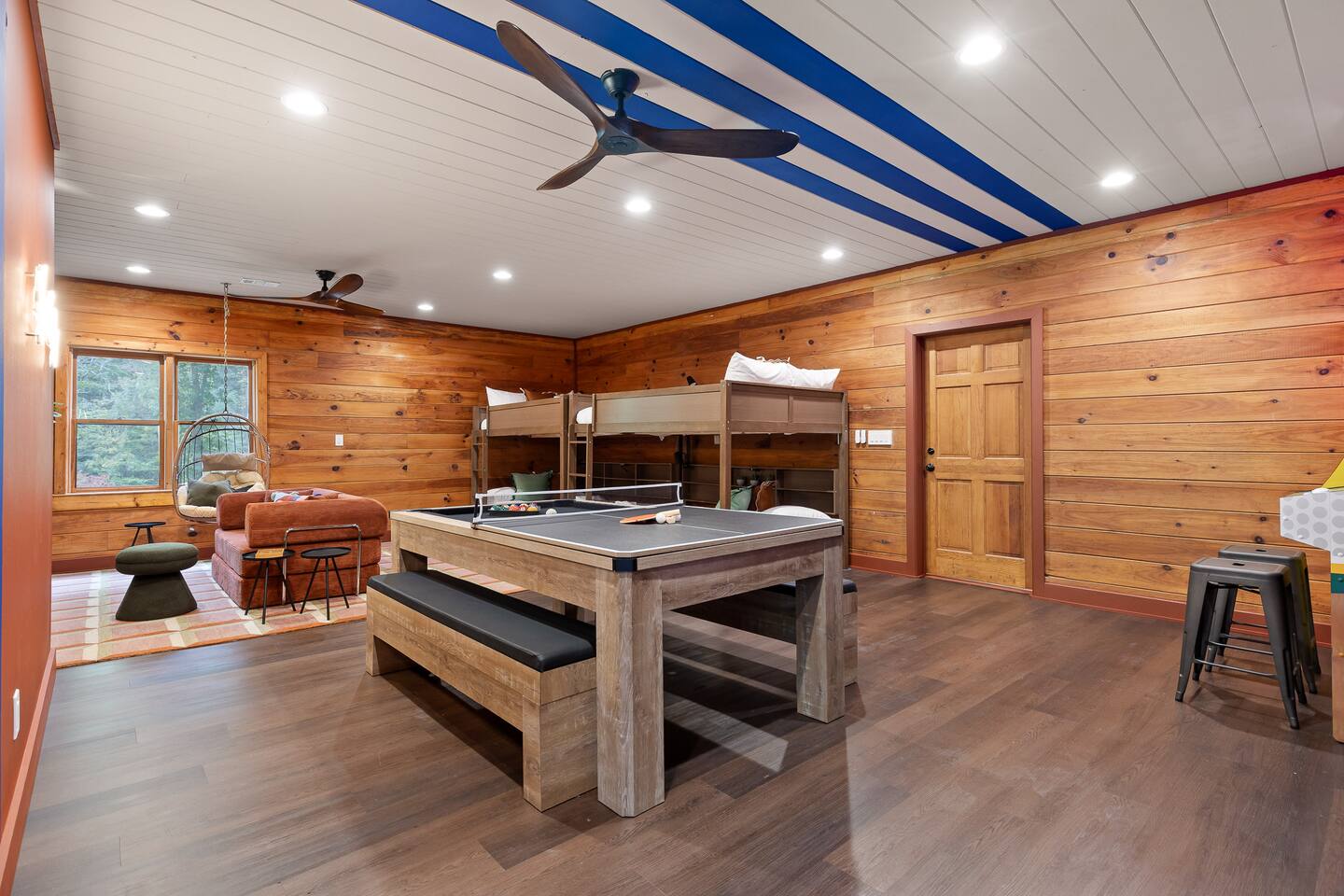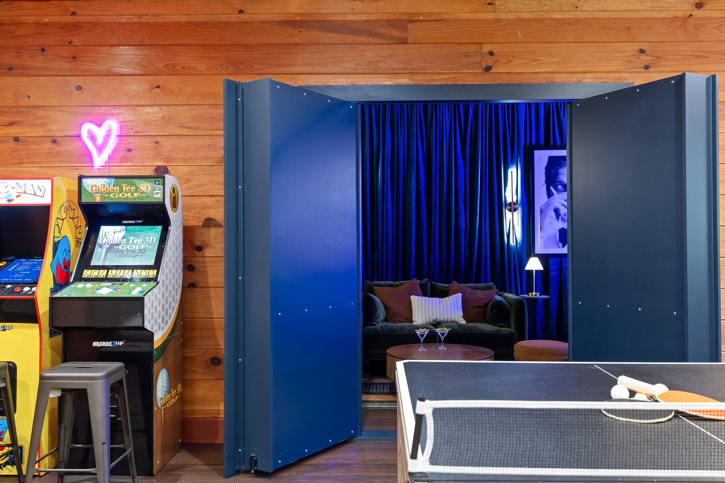 🌲 The Hidden Still — Blue Ridge Speakeasy Lakehouse ⏱️ 13 min to Downtown Blue Ridge 🛌 SLEEPS 22 • 12 beds • 7BR/4.5BA 🕵️ Secret speakeasy behind a bookshelf 🎬 Movie theater • 🛁 7-person hot tub 🔥 Fire pit • 🪵 Two decks with lake views 🛶 Paddleboards & kayaks + life jackets 🎣 Private dock on Allen Lake 🎮 Games: pool • ping-pong • shuffleboard • arcade 🏀 Mini hoops • Cornhole 🍳 Stocked kitchen + Nespresso 👶 High chair & Pack ’n Play 🐶 Pet friendly.