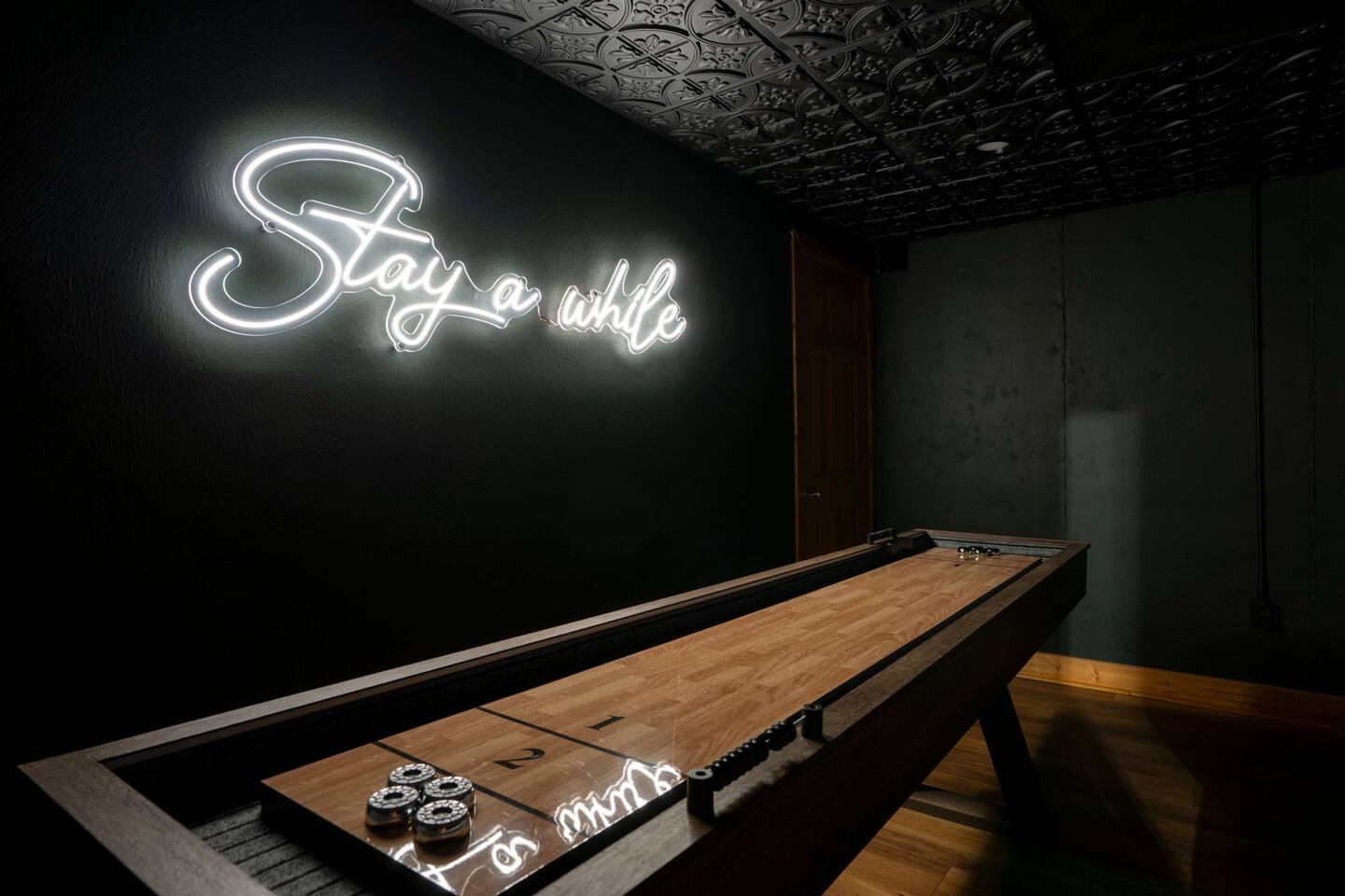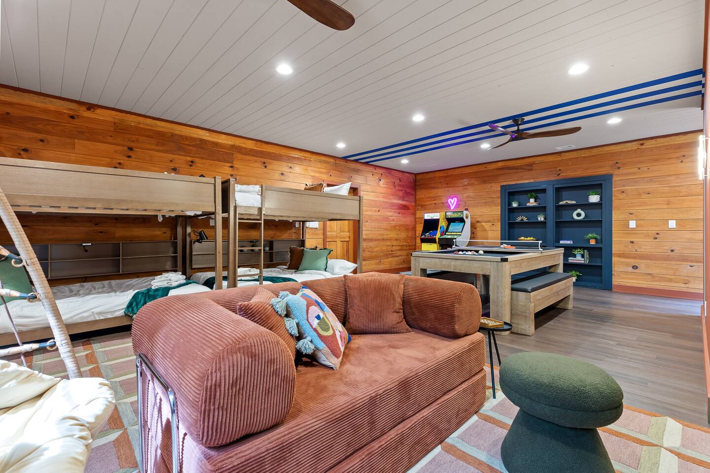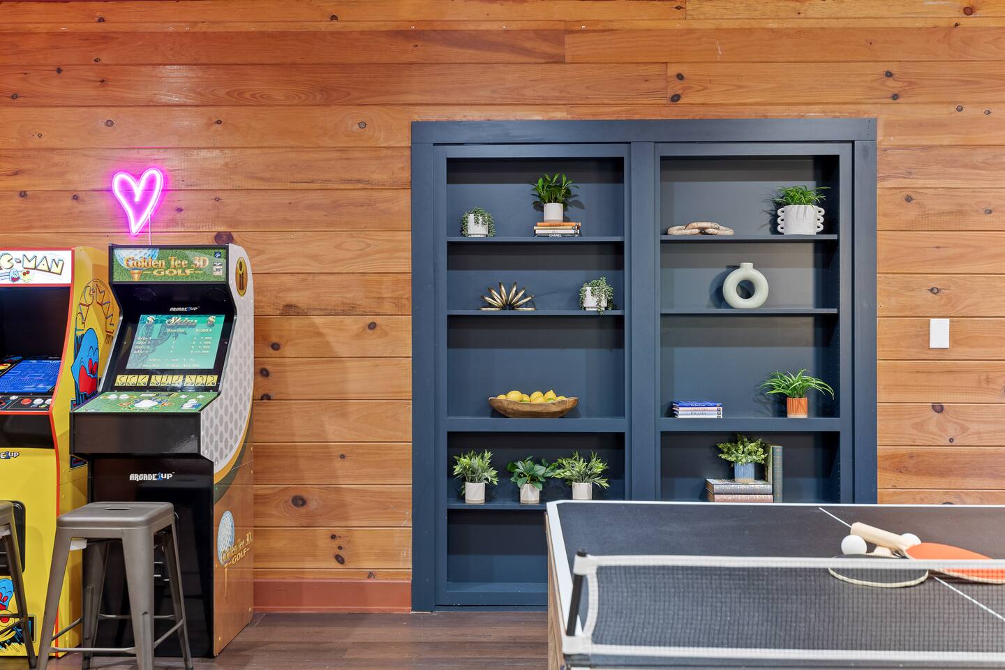 🌲 The Hidden Still — Blue Ridge Speakeasy Lakehouse ⏱️ 13 min to Downtown Blue Ridge 🛌 SLEEPS 22 • 12 beds • 7BR/4.5BA 🕵️ Secret speakeasy behind a bookshelf 🎬 Movie theater • 🛁 7-person hot tub 🔥 Fire pit • 🪵 Two decks with lake views 🛶 Paddleboards & kayaks + life jackets 🎣 Private dock on Allen Lake 🎮 Games: pool • ping-pong • shuffleboard • arcade 🏀 Mini hoops • Cornhole 🍳 Stocked kitchen + Nespresso 👶 High chair & Pack ’n Play 🐶 Pet friendly.